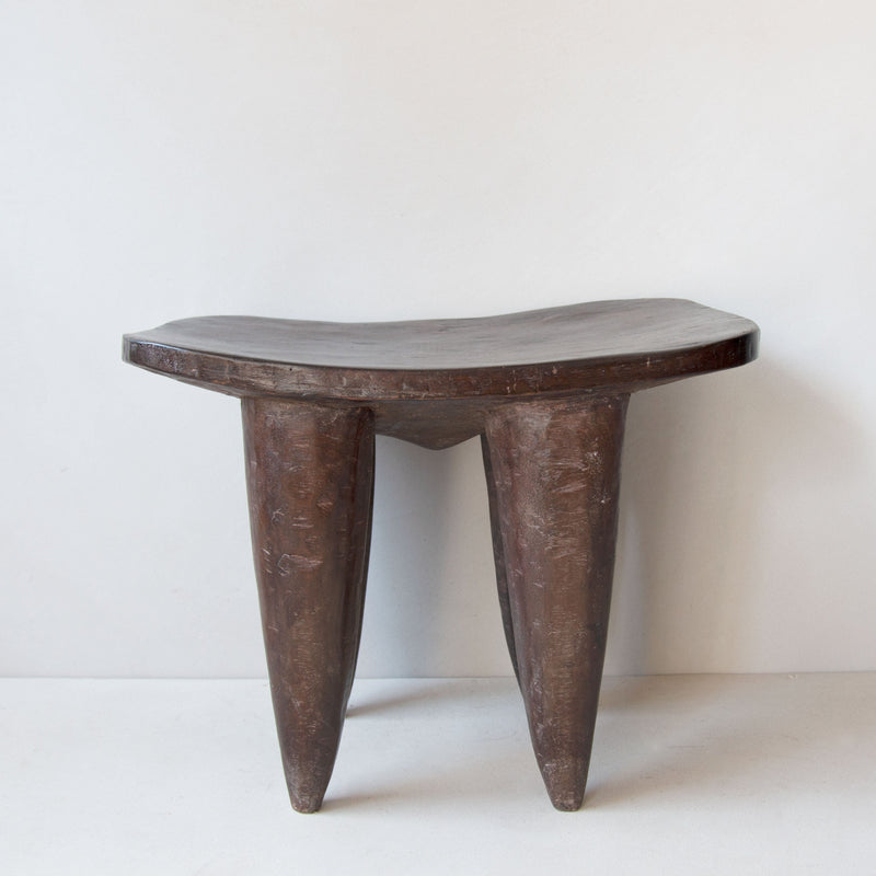 Our Senufo stools are vintage pieces curated from the Senufo people of the Ivory Coast. Each stool has been hand-carved from indigenous woods. The stool would have been used as a personal seat and will shown signs of slight imperfections as they are vintage pieces.