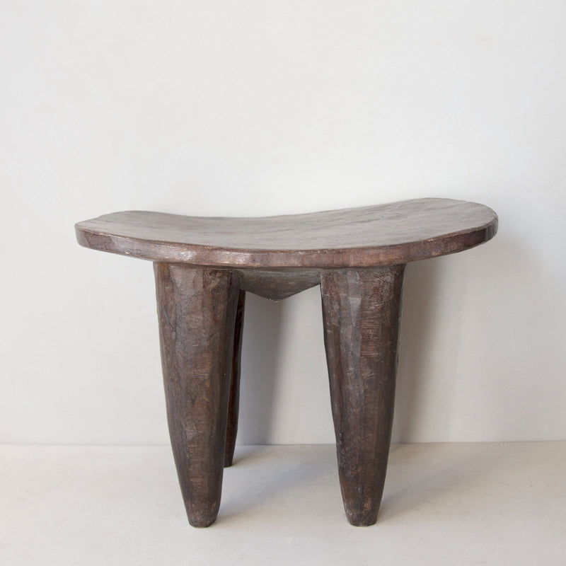 Our Senufo stools are vintage pieces curated from the Senufo people of the Ivory Coast. Each stool has been hand-carved from indigenous woods. The stool would have been used as a personal seat and will shown signs of slight imperfections as they are vintage pieces.