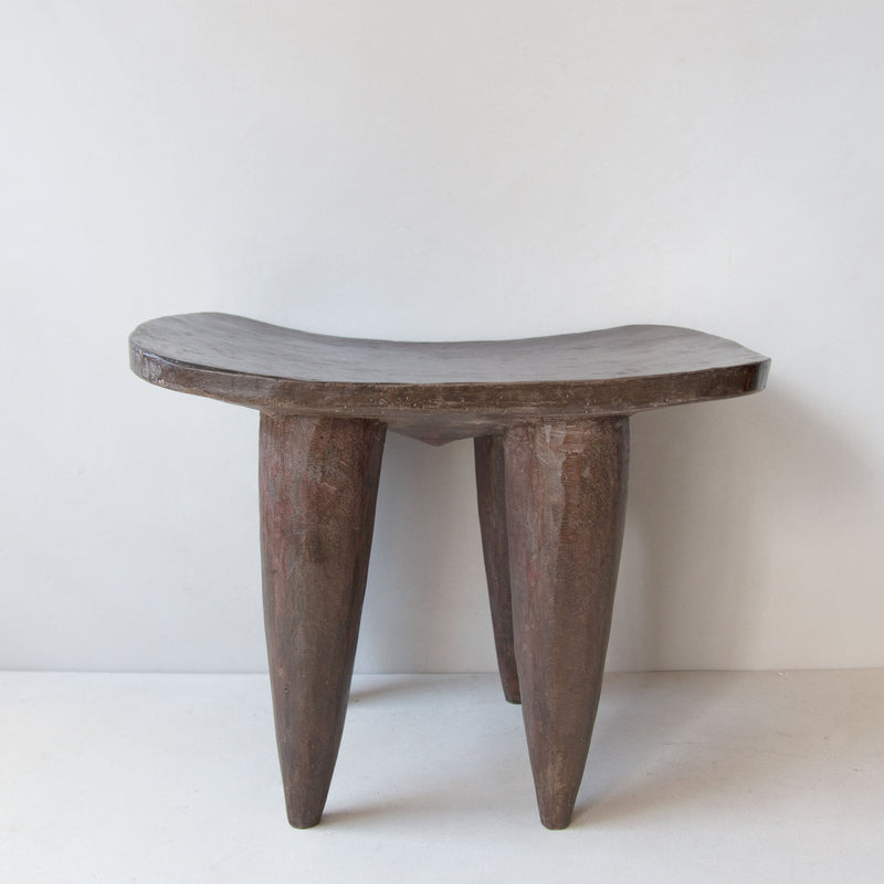 Our Senufo stools are vintage pieces curated from the Senufo people of the Ivory Coast. Each stool has been hand-carved from indigenous woods. The stool would have been used as a personal seat and will shown signs of slight imperfections as they are vintage pieces.