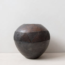 Our collection of vintage Zulu pots have been hand-crafted by the Zulu people of South Africa. Each pot is made by hand using clay from river banks. The clay is hand-coiled and smoothed down before it is burnished and fired in an open fire pit.